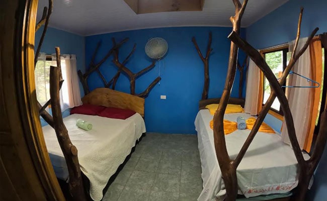 2 lits doubles, 1 lit superposé pour 2 personnes, vue sur le Rio Celeste. Famille 90
