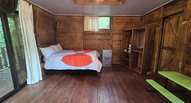 Pour une expérience vraiment unique et spacieuse, notre cabine à deux étages est le meilleur choix pour les familles et les groupes. Cet hébergement spécial offre deux lits doubles et un espace de vie supplémentaire réparti sur deux niveaux, pour que chacun ait la place de se détendre. Le balcon privé offre des vues à couper le souffle sur le Rio Celeste, faisant de votre séjour une aventure mémorable en soi.